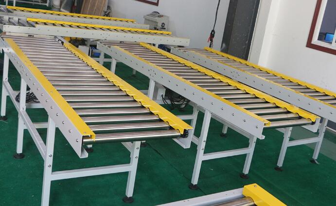 其中鑄膠滾筒輸送機質量較好,膠層厚而耐磨,推薦選用鑄膠滾筒輸送機。包膠滾筒輸 送機也可達到同樣的使用性能,雖然使用壽命較短,但現場可以自行更換膠面,維修方便, 經濟耐用。鏈輪中有軸孔,橫向和豎向鏈槽相通,并與鏈條接觸,配合工作。橫鏈條的整體 卡入橫向鏈槽內,豎鏈條的一邊卡入豎向鏈槽內,結合緊密,運行過程中晃動也不會輕易滑 落,安全可靠,承載能力強,傳動平穩。